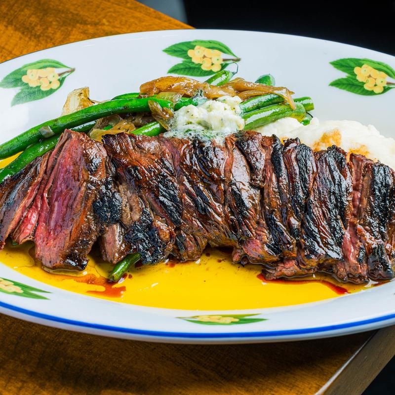 Skirt Steak $26.00 | Hobb’s Chicken Apple Sausage $16.00 | Hobb’s Applewood Smoked Bacon $16.00 • Breakfast potatoes and toast